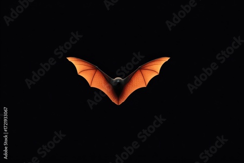 © Andrei, Naklejka premium Eerie bat silhouette with striking orange wings against dark bac