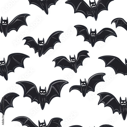 © AriyaniAI, Naklejka premium Eerie Bat Swarm Seamless Pattern for Halloween Night Decorations