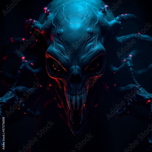 © Volgastudio, Naklejka premium Eerie Bioluminescent Alien Creature: Emerging from DarknessEerie Bioluminescent Alien Creature: Emerging from Darkness