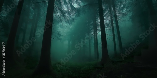 © Nikola, Naklejka premium Eerie German Forest Shrouded in Mysterious Fog