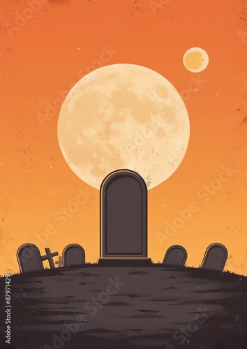Naklejka premium Eerie graveyard at dusk with full moon and tombstones, perfect for spooky...