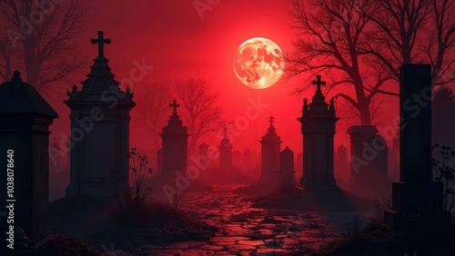 Fototapeta premium Eerie Graveyard Under a Blood Moon