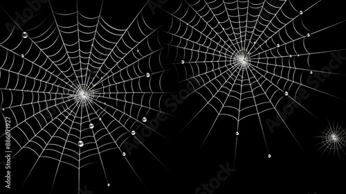 © sorin, Naklejka premium Eerie halloween cobweb with creepy spiders on dark black background for a spooky ambiance