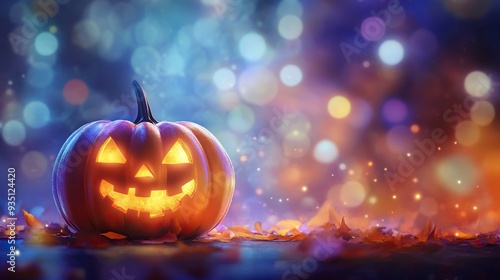 © Fathor, Fototapeta premium Eerie illustration of halloween day with bokeh and blur background. Premium illustration for banners, posters, greetings and Halloween celebrations. generative ai