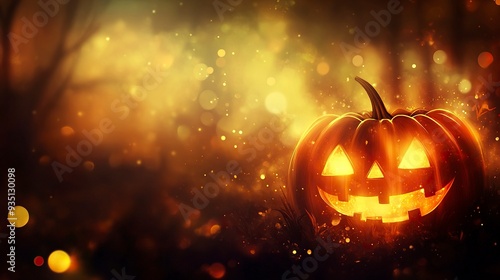 © Fathor, Fototapeta premium Eerie illustration of halloween day with bokeh and blur background. Premium illustration for banners, posters, greetings and Halloween celebrations. generative ai