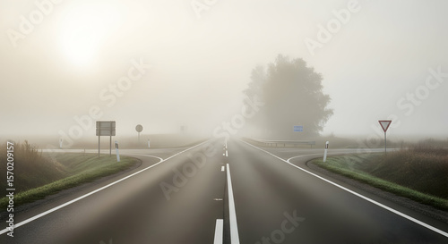 Fototapeta premium Eerie Intersection Shrouded In Mysterious Fog Offering A Sense Of Isolation
