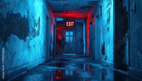 Obraz premium Eerie Neon Glow in Abandoned Hospital Corridor