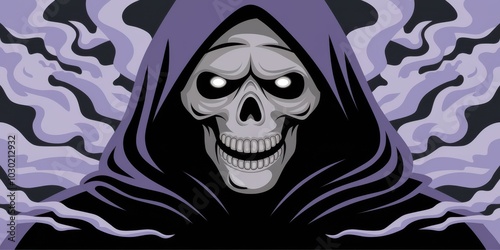 Fototapeta premium Eerie Purple Skull Illustration Smoke Background - Perfect Halloween Marketing, Spooky Decor, Horror-Themed Designs