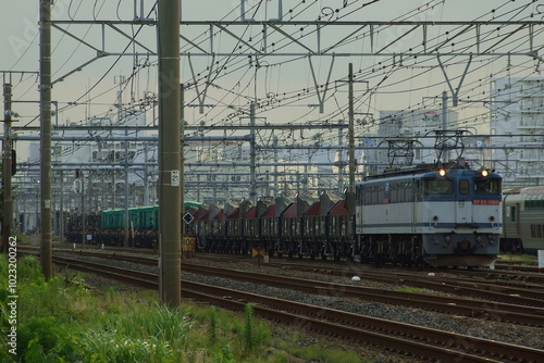 Obraz premium 東海道本線を走行するEF65-1060号機牽引の自衛隊機材輸送訓練列車_2008/6/30撮影