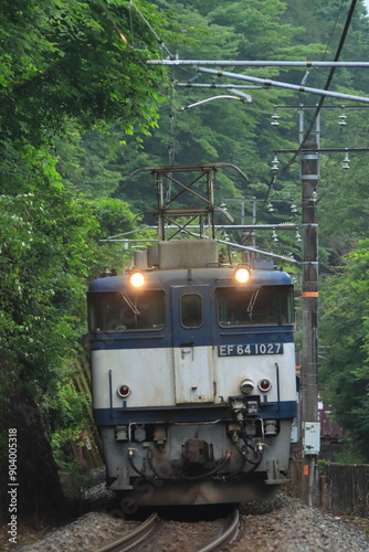 Naklejka premium 新緑が美しい初夏の中央西線を力強く走るEF64形牽引の貨物列車(81レ)_2024/7/6撮影