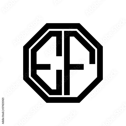 Fototapeta premium EF initial monogram logo, octagon shape, black color