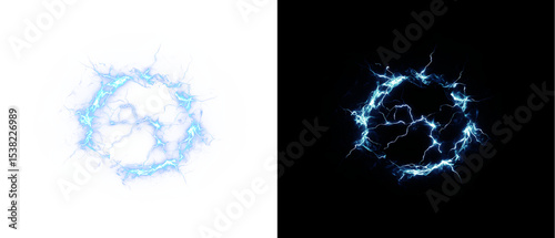 © Gunenko, Fototapeta premium Effect, lightning, ball, magic, and glow merge in this blue energy PNG. A transparent PNG Overlay with 3D thunder sparks perfect for tech, plasma, or futuristic explosion designs.