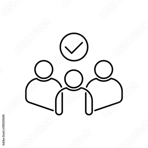 © YAYAH, Obraz premium effective teamwork icon with black thin line group. simple trend linear logotype graphic web stroke design element isolated on white. concept of policy safety or protection and leader meeting symbol