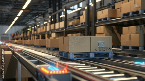 Naklejka premium Efficient Automation Streamlined Package Sorting in Action