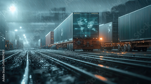 © Worakit, Obraz premium Efficient cargo delivery with scheduling software in rainy environment