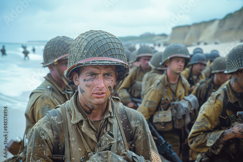 Fototapeta premium Efficient D-Day Deployment: Allies Streamline Troop Landings in Normandy
