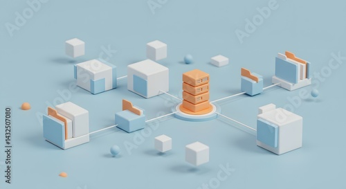 Obraz premium Efficient Data Management System Networked File Storage and Interconnected Cubes Illustration