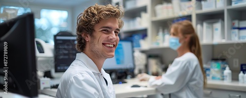 Obraz premium Efficient dental receptionist scheduling patient visits using digital system