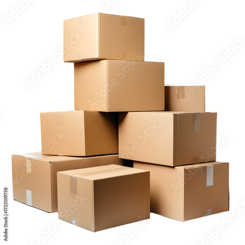 Fototapeta premium Efficient Shipping Operations with Brown Cardboard Boxes in Warehouse