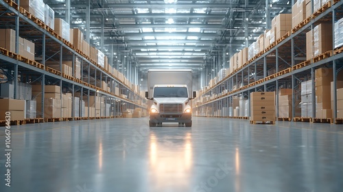© nilawan, Obraz premium Efficient transport solutions how delivery trucks optimize warehouse operations