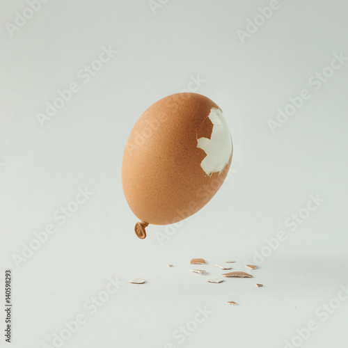 © Zamurovic Brothers, Fototapeta premium Egg balloon on bright white background. Minimal creative concept. Flat lay.