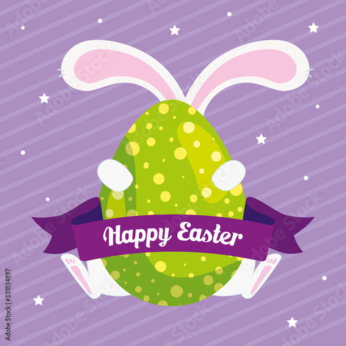 Fototapeta premium egg with feet and ears rabbit in happy easter card vector illustration design