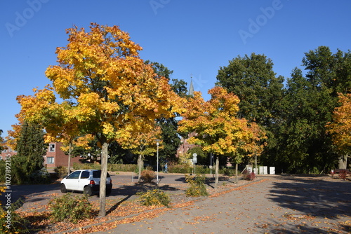 Naklejka premium Eggesin, herbstlich Ahornbäume am Markt