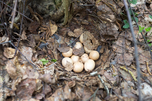 © tansol, Fototapeta premium Eggs Bonasa bonasia in the nest