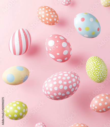 © Moneymaker, Fototapeta premium eggs in pastel colors on a pink background, illustration, pattern,