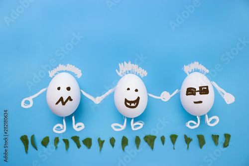 © lijphoto, Obraz premium Eggs on blue background