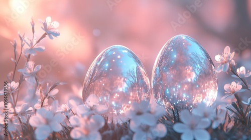 © Ilya, Fototapeta premium Eggs with flower, Easter.