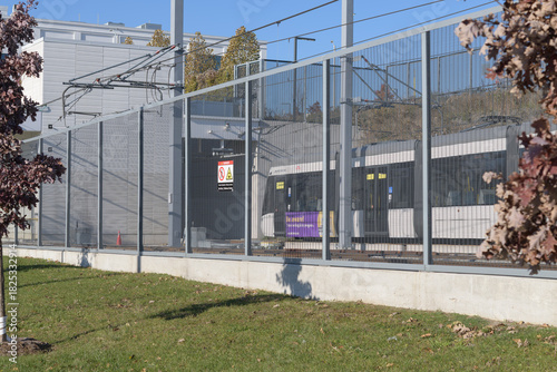 © eugen, Fototapeta premium Eglinton Crosstown LRT (Line 5) vehicles called the Alstom Citadis Spirit arriving at Mount Dennis station, Toronto