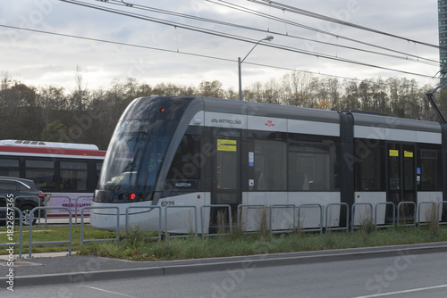 Fototapeta premium Eglinton Crosstown LRT vehicle near Sunnybrook Park LRT Station on Eglinton...