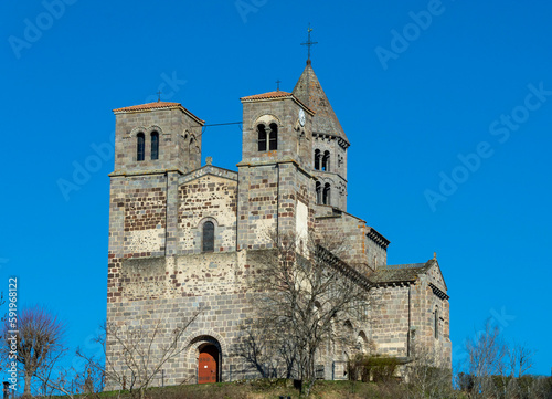 © JBN, Naklejka premium Eglise romane de Saint-Nectiare Parc naturel regional des volcans d'Auvergne. Département du Puy de Dôme. Auvergne-Rhône-Alpes. France. Europe