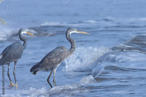 Naklejka premium Egret on the beach. Waterbird. Seabird. Egretta gularis. Western reef heron. Western reef egret.