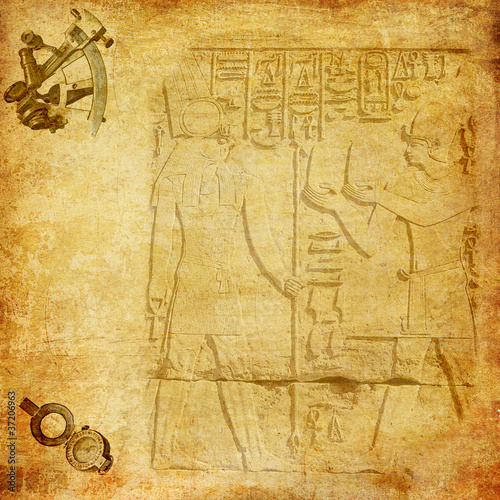 © acrogame, Obraz premium Egyptian archeology texture with compass and sextant