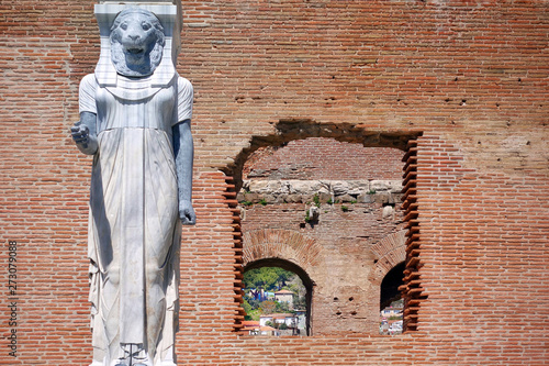 Naklejka premium Egyptian Goddess Statue in Red Bazilica of Bergama in Turkey