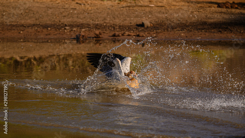 © robbyh, Fototapeta premium Egyptian Goose landing into the water with a big splash at remote dam