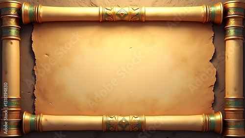 © Beratonic Studios, Fototapeta premium egyptian papyrus game ui frame antique asset with hieroglyphs