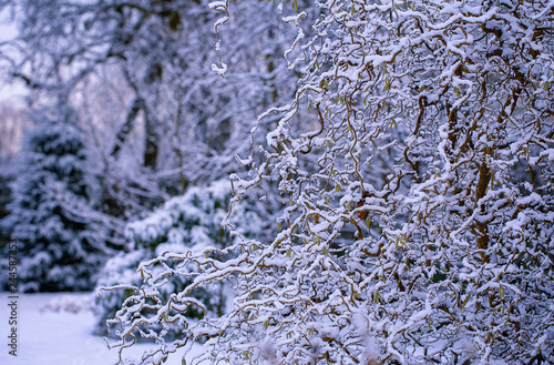 © lenakorzh, Obraz premium egzotyczny krzew w śniegu i mróz