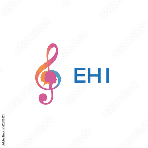 Fototapeta premium EHI “Creative music logo with human silhouettes and treble clef in gradient colors, EHI Later Logo, modern artistic design isolated on white background”