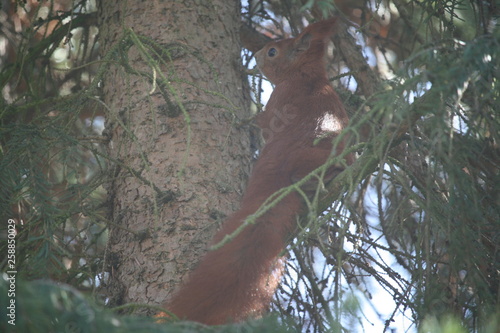 Obraz premium Eichhörnchen / Sciurus in einer Fichte 1