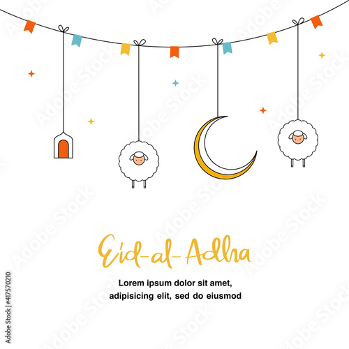 Obraz premium Eid AL Adha greeting flat illustration with cute sheep