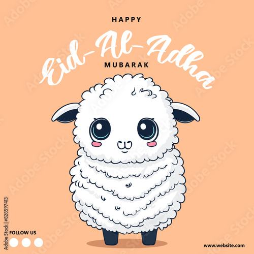 Naklejka premium Eid Al Adha Mubarak Islamic Celebration Muslim Community event, Eid Greeting Card Cute Illustration