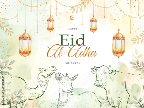© Monica, Fototapeta premium eid al adha splash color greeting card with qurban animals