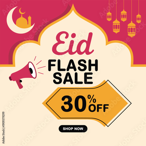 © OhiStock, Fototapeta premium Eid flash sale banner with megaphone and lanterns