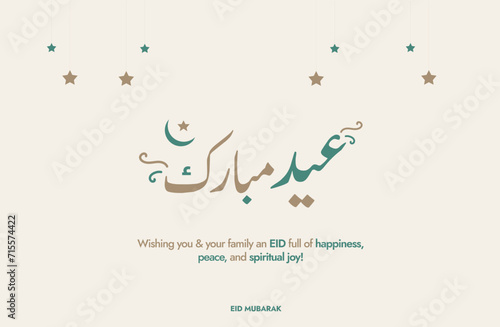 Fototapeta premium Eid Mubarak. Simple and decent Eid Mubarak greeting card design in light beige colour. Arabic text translation: Eid Mubarak.