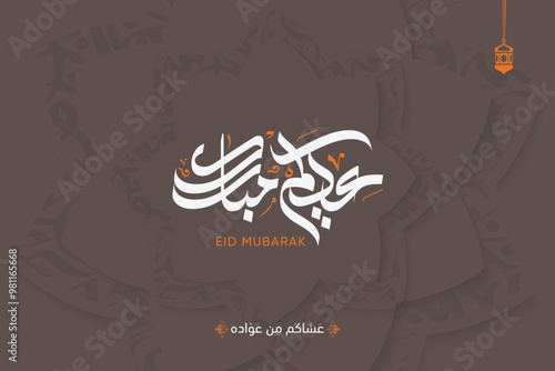 Fototapeta premium Eid mubarak typography in arabic calligraphic style on a Islamic arab vintage background, Typography Translation (Eid Greetings)
