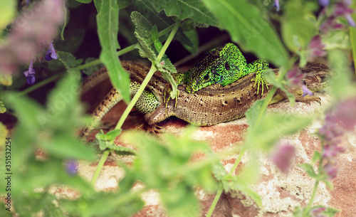 © Andrea Geiss, Obraz premium Eidechse bei der Paarung