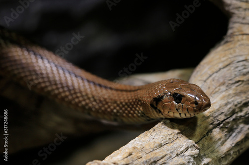 Fototapeta premium Eidechsennattern (Malpolon) auf Baumstamm